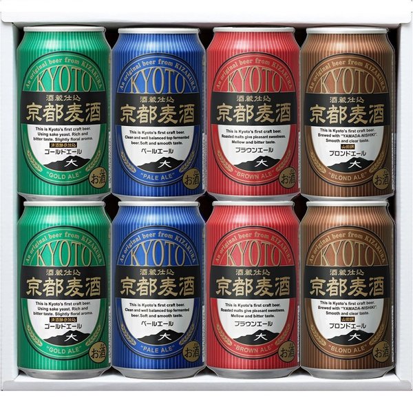 1995年誕生、お酒の「黄桜」が造る京都初の地ビール「京都麦酒」4種8缶の飲み比べセットです。