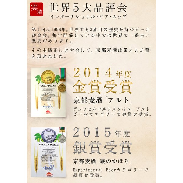 京都麦酒は京都伏見の名水「伏水」と清酒製造技術を生かした「清酒メーカーならではのクラフトビール」として国内のクラフトビールコンテスト金賞を始め、数々の受賞歴とともに京都観光のお土産にもご好評いただいております。