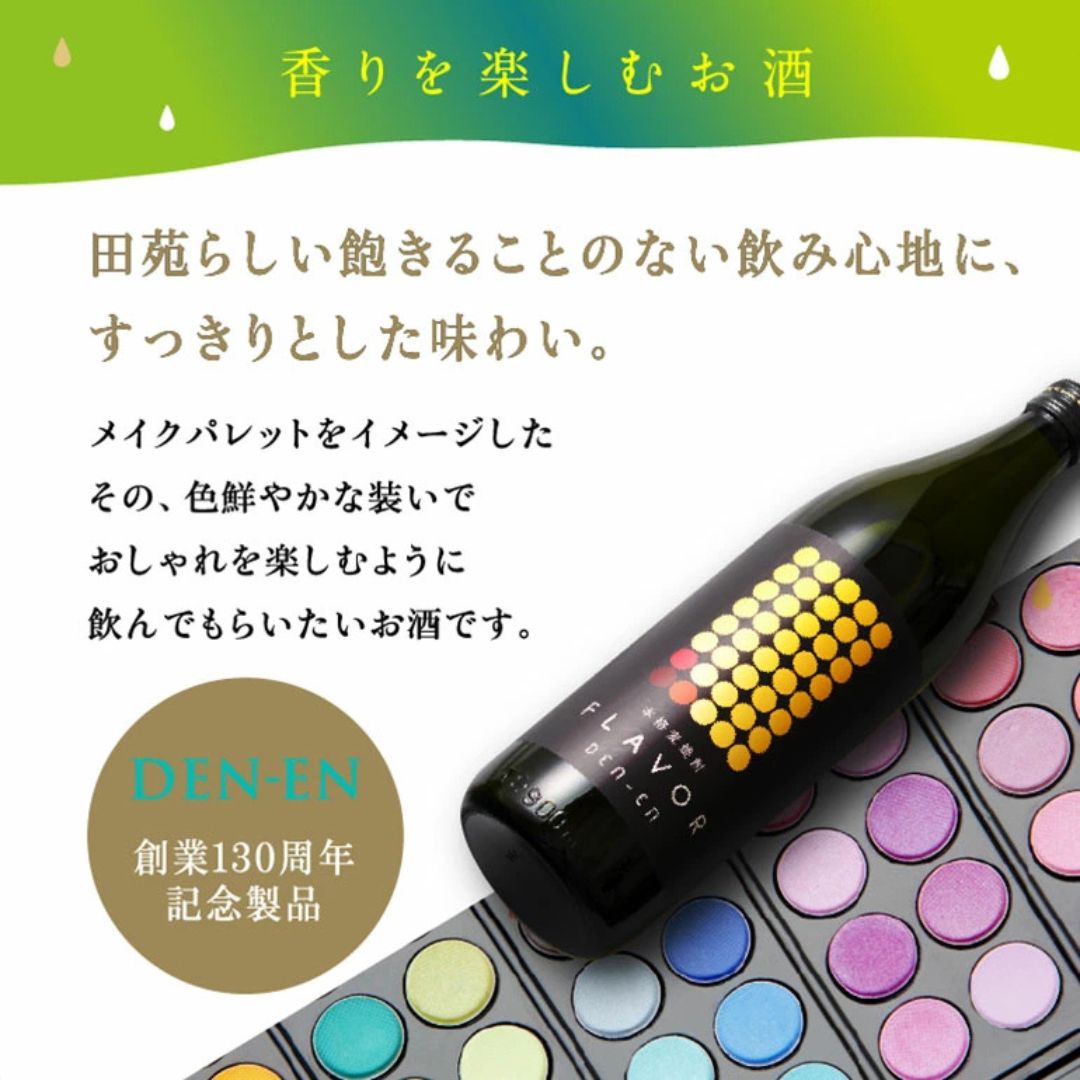 田苑らしい、飽きることのない飲み心地に、すっきりとした味わい。メイクパレットをイメージした色鮮やかな装いで、おしゃれを楽しむように飲んでもらいたいお酒です。