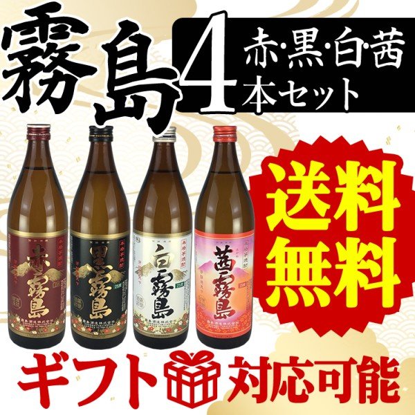 北海道、沖縄、離島は別途送料が発生します 霧島 飲み比べセット 赤・黒・白・茜の4種類の霧島セット 芋焼酎 焼酎セット 送料無料 ギフト