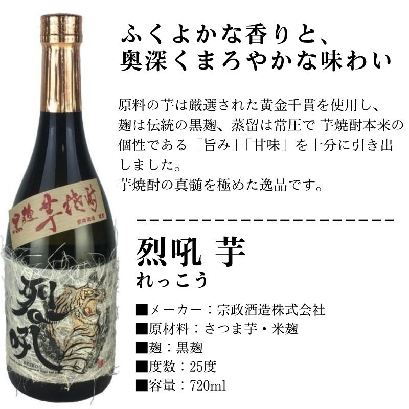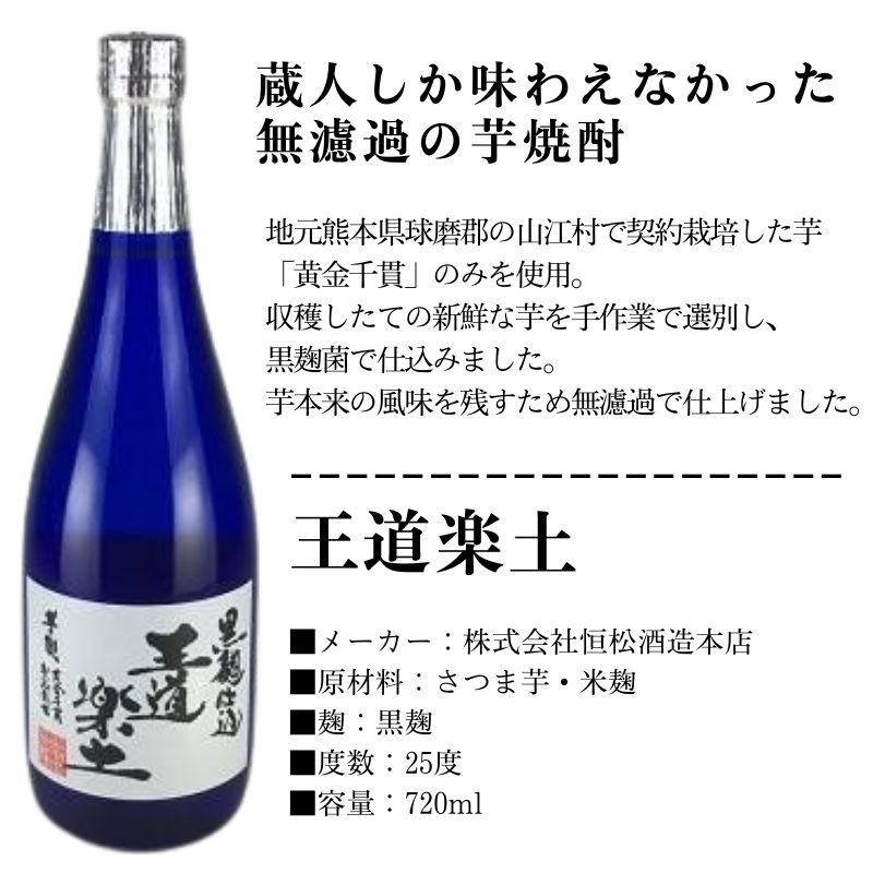 厳選された黄金千貫を使用し、麹は伝統の黒麹、蒸留は常圧で芋焼酎本来の個性である「旨み」「甘味」を十分に引き出しました。