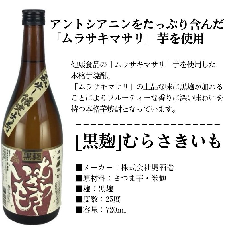 上品な味に黒麹が加わることによりフルーティーな香りに深い味わいを持つ本格芋焼酎となっています。
