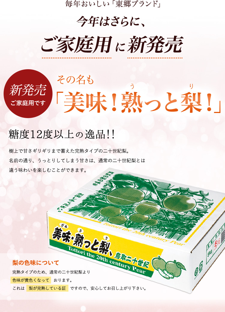 ※完熟タイプですので、進物用の梨と違い、色ムラや多少の傷があります