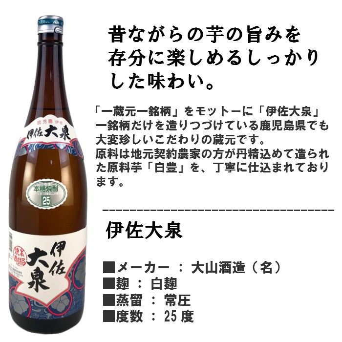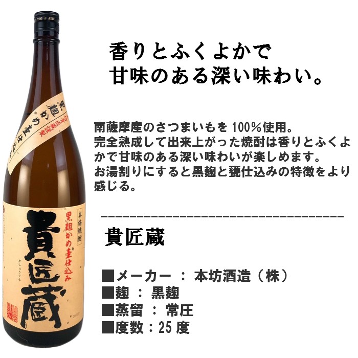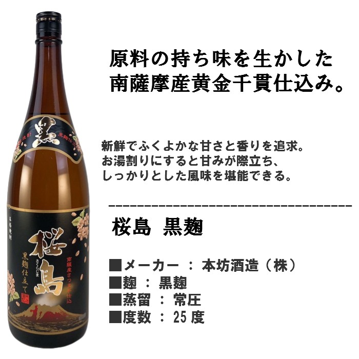 新鮮でふくよかな甘さと香りを追求し、原料の持ち味を生かした南薩摩産黄金千貫仕込み。お湯割りにすると甘みが際立ち。しっかりとした風味を堪能できる。