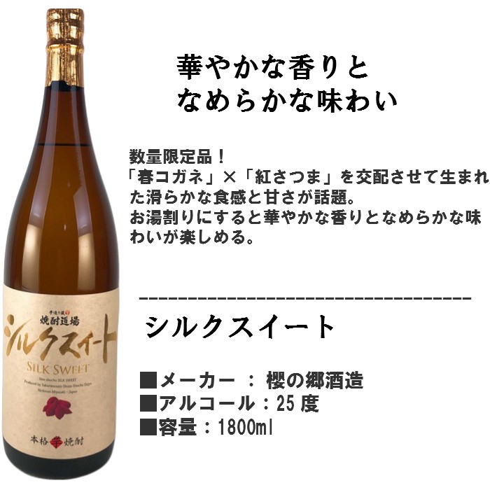 数量限定品!「春コガネ」×「紅さつま」を交配させて生まれた滑らかな食感と甘さが話題。お湯割りにすると華やかな香りとなめらかな味わいが楽しめる。